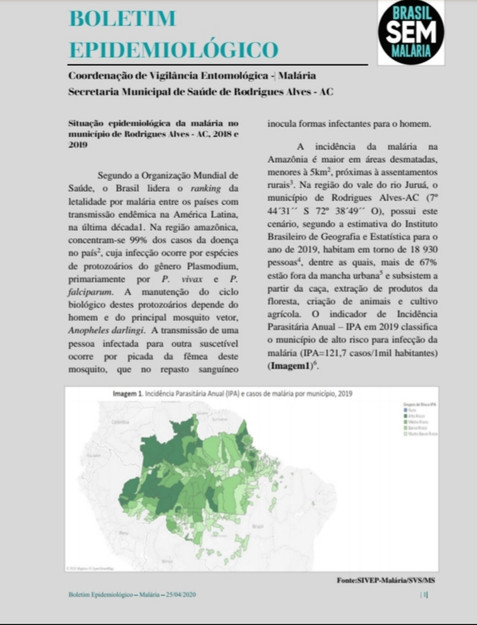 Nesta quinta (25) Dia Mundial da Malária, a Secretaria Municipal de Saúde de Rodrigues Alves, anuncia redução do número de casos da doença em comparação a anos anteriores. Boa notícia.